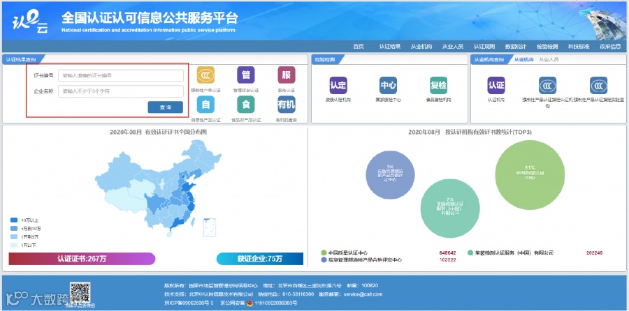 登录全国认证认可信息公共服务平台