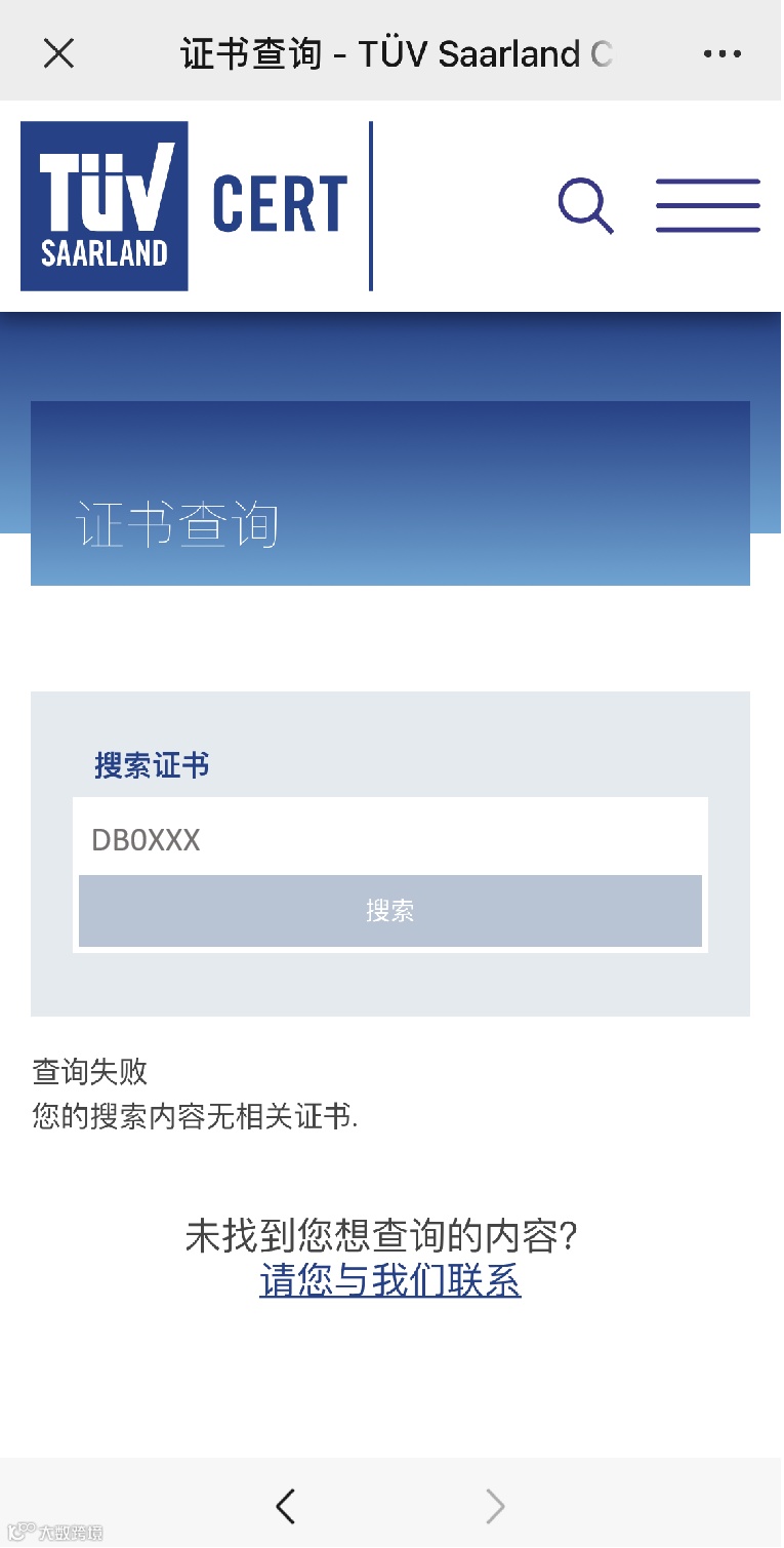证书并非由TÜV萨尔颁发。在这些情况下,请使用相应认证公司的数据库查询。