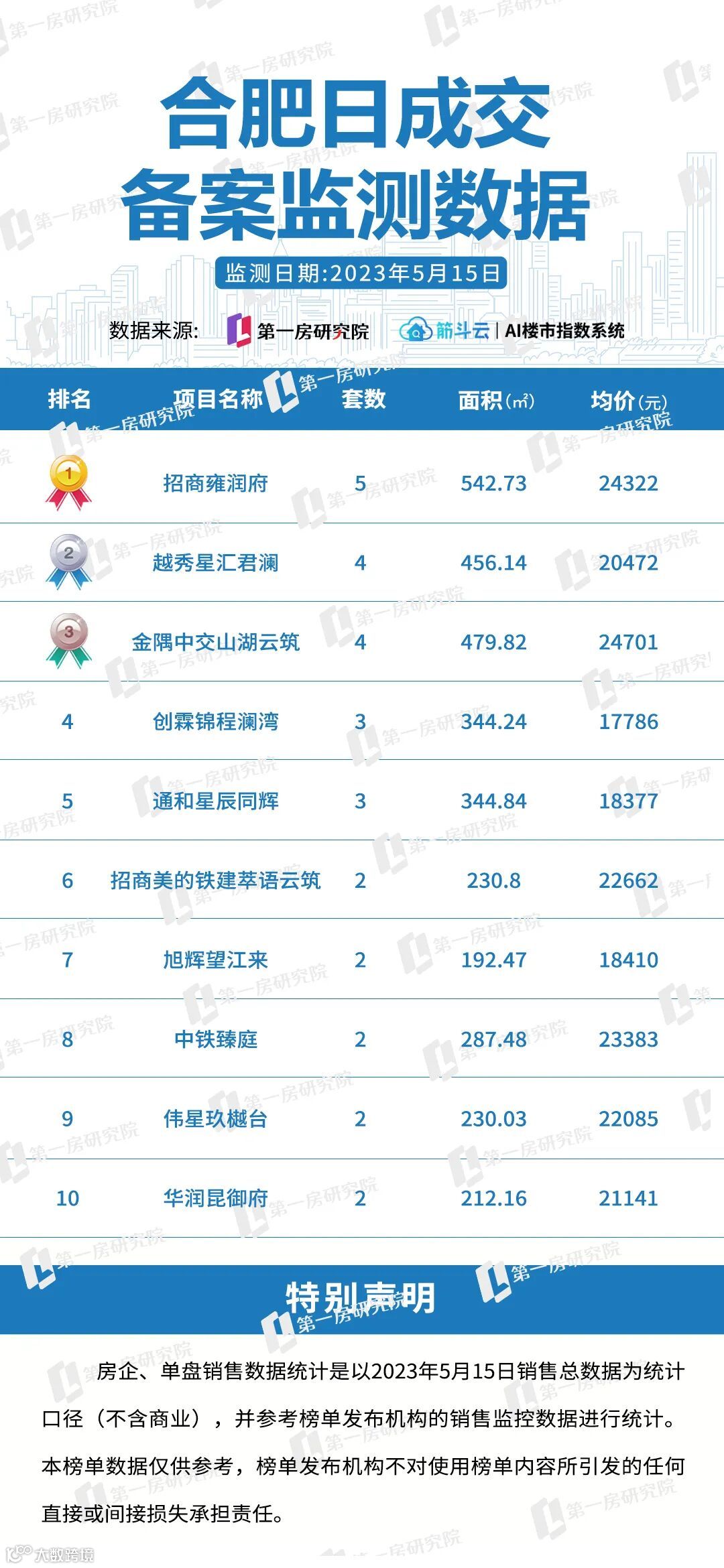 5月15日合肥市区备案住宅类商品房44套,备案均价21254元/㎡