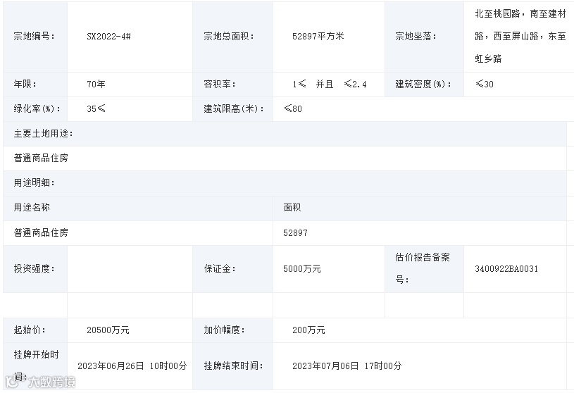 SX2022-4# 号地块:2023年06月26日 10时00分 至 2023年07月06日 17时00分;