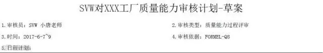 第二方审核:一般由客户进行。比如前面有说过的大众Formel Q质量能力就是大众审核供应商的标准(详见大众集团Formel质量能力),一般是过程审核。