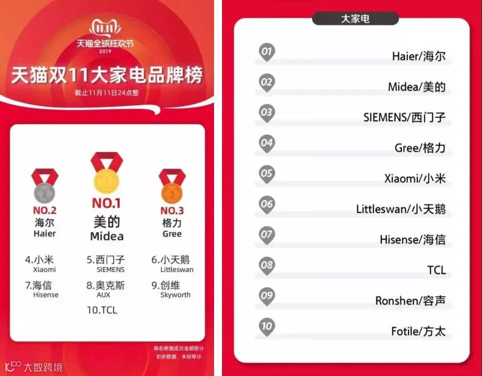 从以上部分榜单中可以看到,知名品牌的销量依旧强势,前十位上榜品牌几乎无变动,只是排名发生了变化。