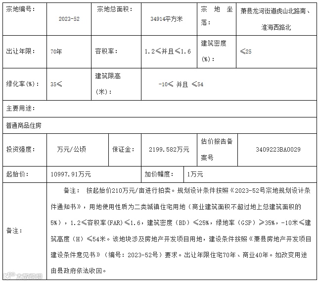 拍卖地点:安徽省宿州市萧县萧龙路东侧宿州市公共资源交易中心萧县分中心二楼。