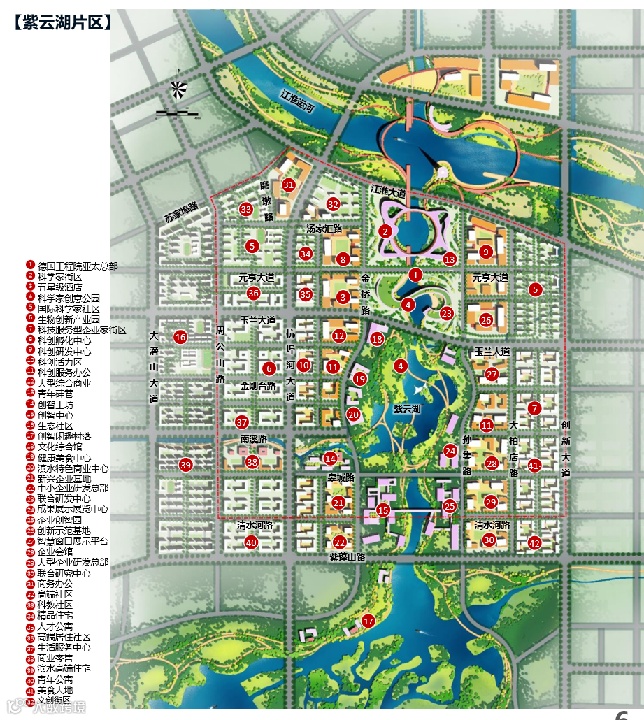 紫云湖片区总占地面积约6.9平方公里,东至创新大道、南至紫蓬山路、西至大潜山大道、北至元亨大道,产业用地4000余亩,片区中心湖面水域面积约600亩。