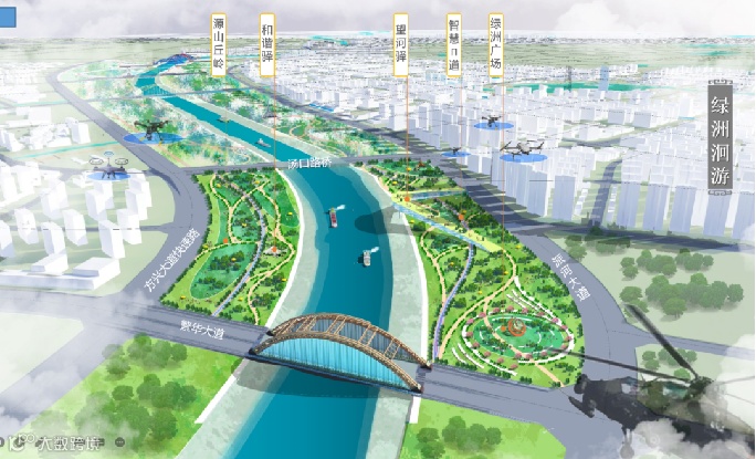 路桥、玉兰大道桥、集贤路桥6座桥梁,连接运河北侧的方兴大道和南侧的江淮大道,和即将启动建设的派河18驿运河景观带,则是紫云湖片区重要的生态景观廊道。