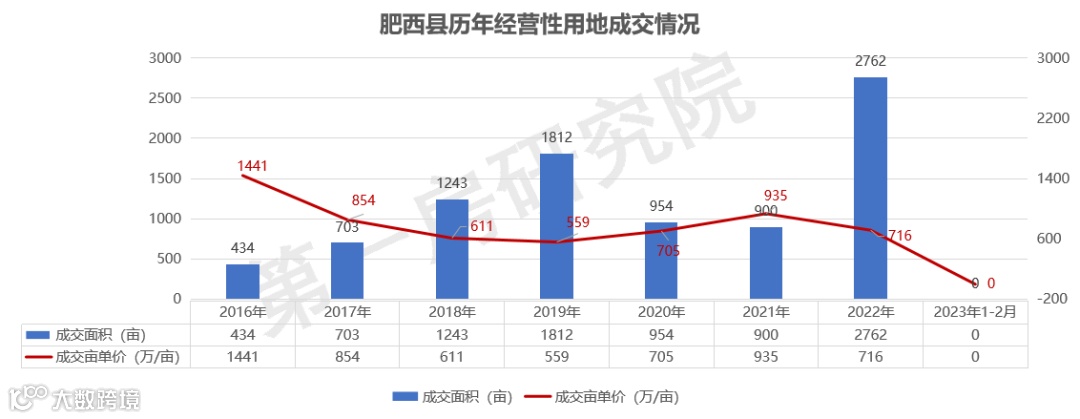 西县经营性用地年均成交量1008亩,2022年成交2762亩,对比2021年全年增长207%,土地规模翻近三倍。