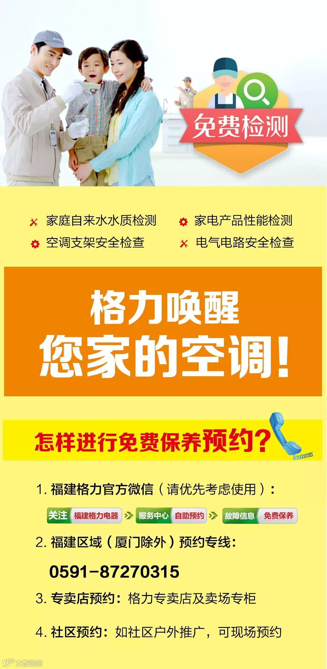3月1日-3月20日,福建格力在全省范围内推出免费检测、免费保养服务,免费预约正火热进行中......