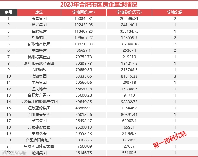 从开发商的拿地情况来看,今年合肥市区总共成交
