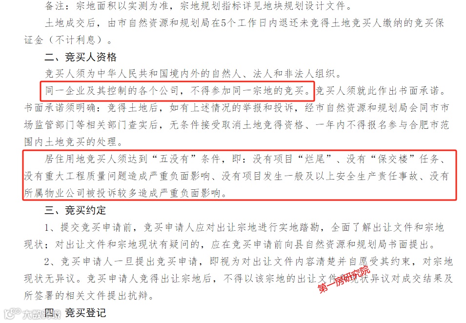 4、竞买人须达到“五没有”条件,即:没有项目“烂尾”、没有“保交楼”任务、没有重大工程