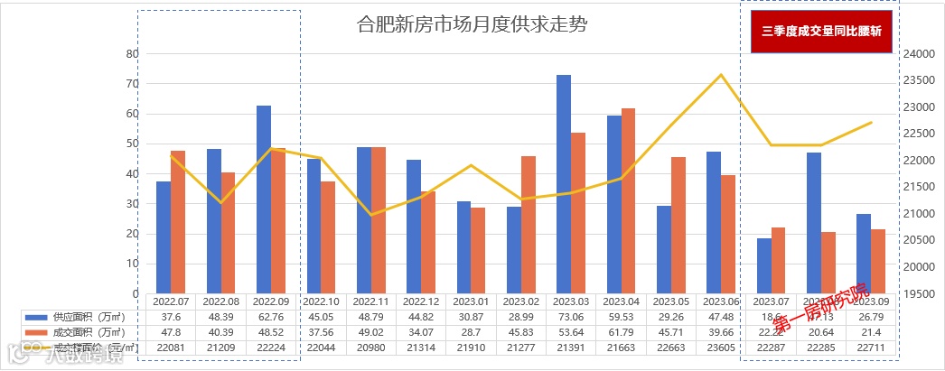 从新房市场来看,今年合肥整体市场先扬后抑,自4月份以后逐月下滑,7-9月基本横盘,而三季度成交64.3万㎡,同比下降53%,已经腰斩,自合肥全面放开限购以来,市场未见明显回暖,客户观望情绪浓厚,后期有待政策刺激市场上涨。