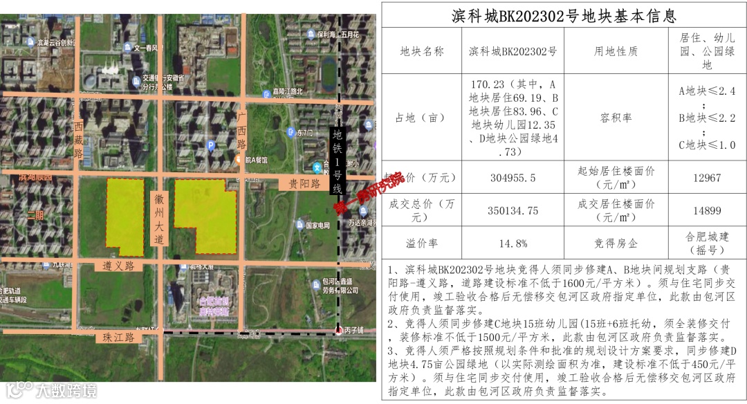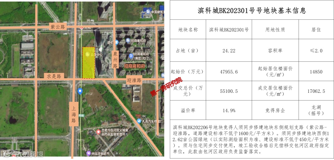 另外一宗位于滨湖金融后台基地板块,而且是一宗面积高达170亩的巨无霸地块,涵盖居住、教育和其他用地,若打造改善项目,施展空间较大。此次被合肥城建获取,据传将与华润合作开发,预计售价接近3万/㎡。