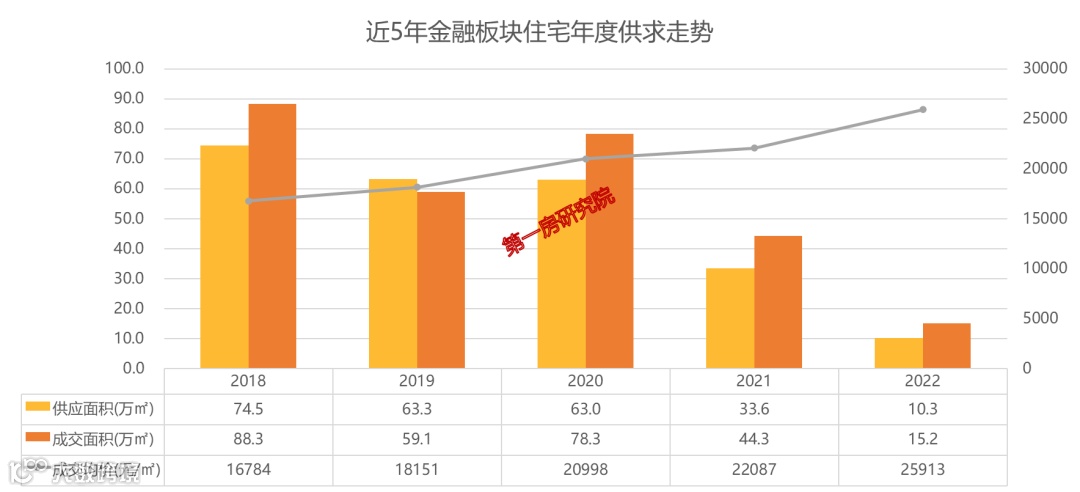 近5年金融板块年均供应48.9万㎡,年均成交57万㎡,成交均价一路上扬。而从近一年的月度走势来看,前期板块内项目稀少且处于尾盘,成交量一直不高,随着伟星项目开盘,成交量大幅上涨。