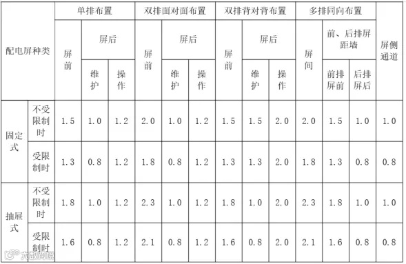 4 控制屏、控制柜、落地式动力配电箱前后的通道最小宽度可按本表确定;