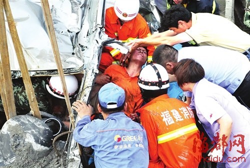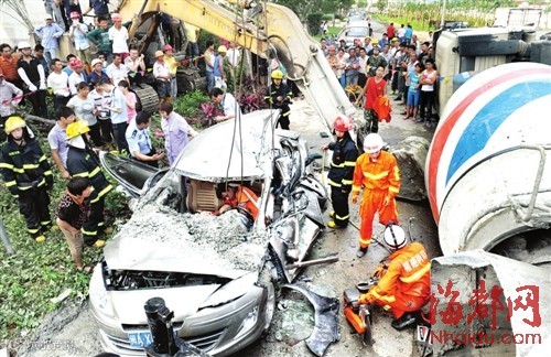 据海峡都市报报道,6月8日13时50分,3个家庭乘坐小车,准备前往福州台江万达广场聚会。不料途经马尾江滨东大道时,路过的一辆水泥搅拌车突然侧翻,不偏不倚压在小车上,4大人3小孩被困车中。危难下,附近热心市民和安装工人砸车窗,救出5人,而驾驶员和他两周岁的儿子被困车内。救援人员赶到后,先后将被困小孩和父亲救出。不幸的是,小男孩却没能和他父亲一起活着出来,远离开了他的家人。