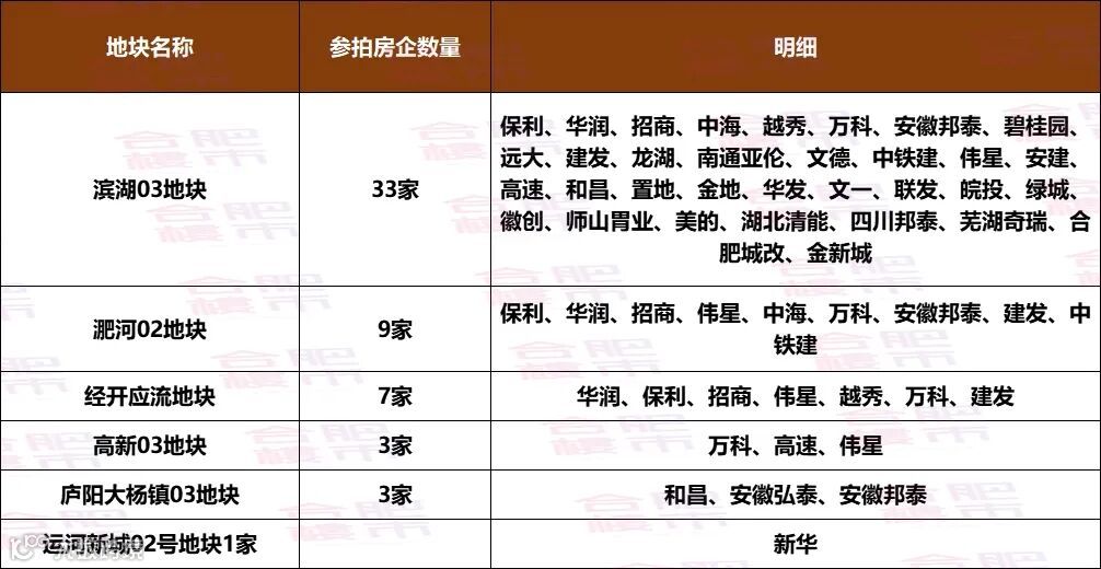 不仅仅是肥西,今天微博也同步爆出了市区地块的房企参拍名单。