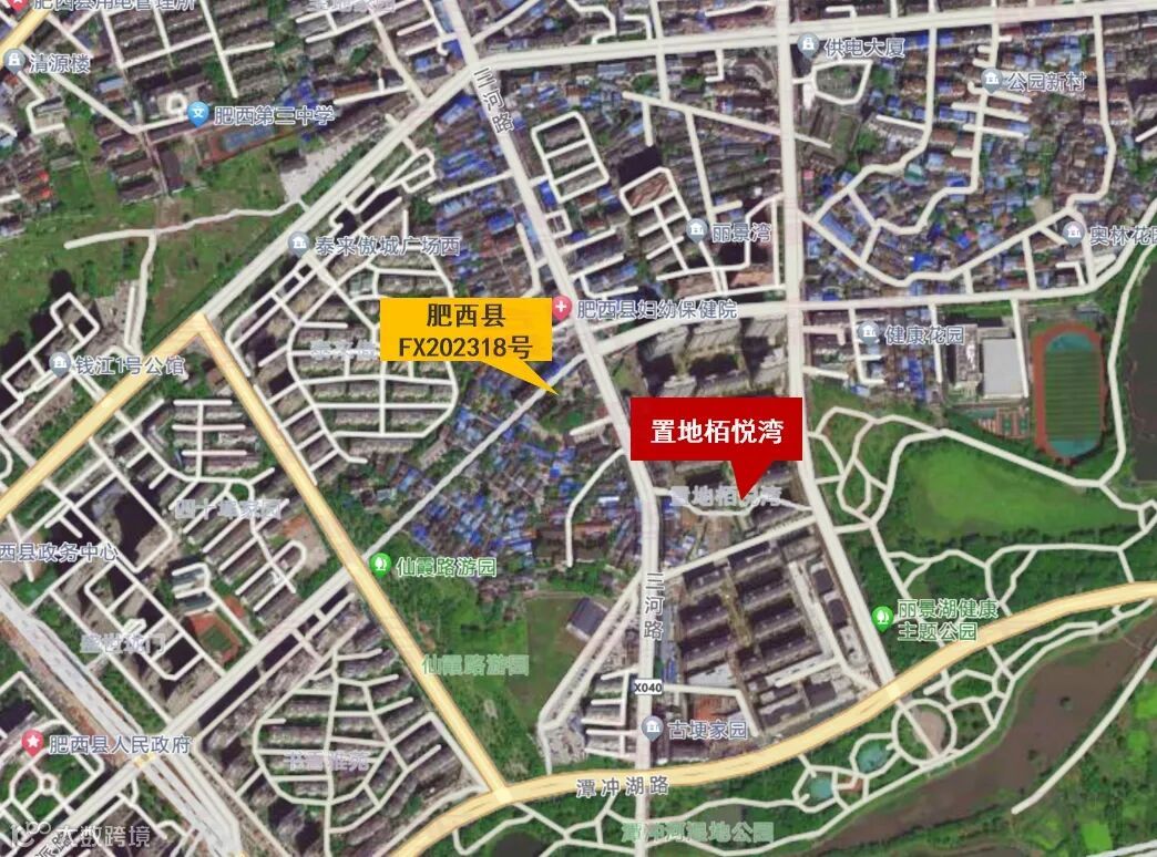 该宗地块位于丽景湖公园西北侧,距离置地栢悦湾小区非常的近,在建的地铁3号线延长线、肥西三中、肥西县妇幼保健院等配套都位于地块周边。
