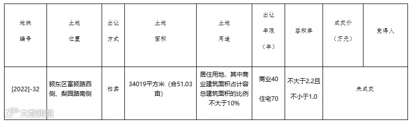 阜阳阜国土(拍)告字〔2023〕1号公告出让结果公示