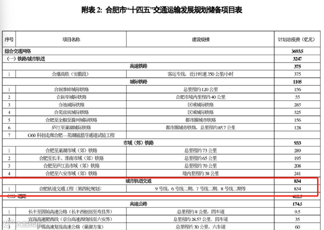 合六市域(郊)铁路最快明年9月份开工,与地铁2号线无缝连接,直达庐阳、瑶海。合六市域(郊)铁路最高时速120km/h,总长65.8km,车站数量21座,从六安市天堂寨路站-南岗站,直接工程费约176亿,总投资约282.6亿。