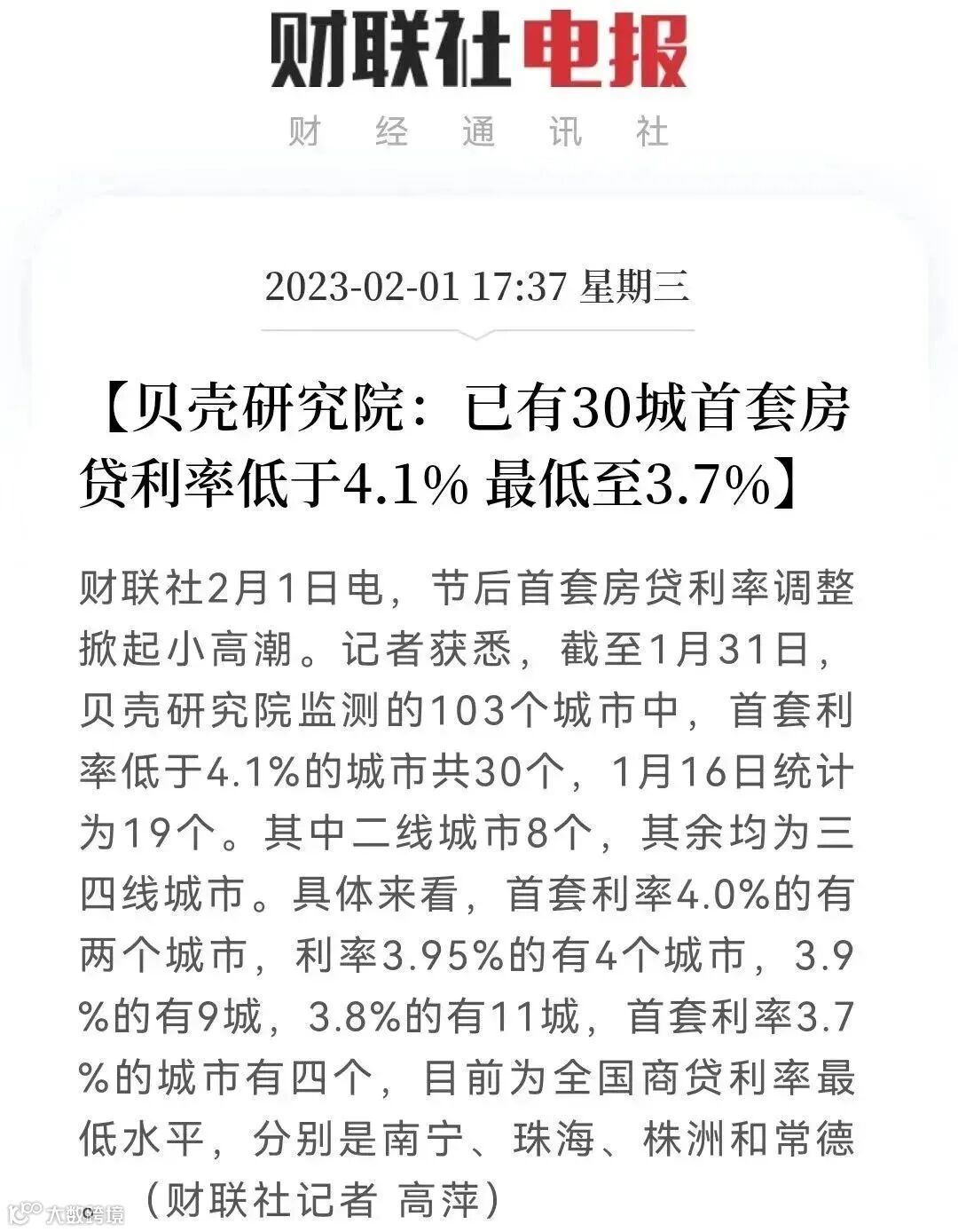 据贝壳研究院统计,全国已有30城首套房贷利率低于4.1%,最低甚至已达到3.7%!