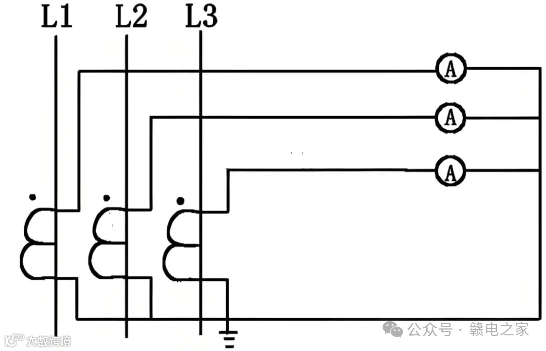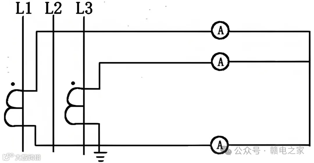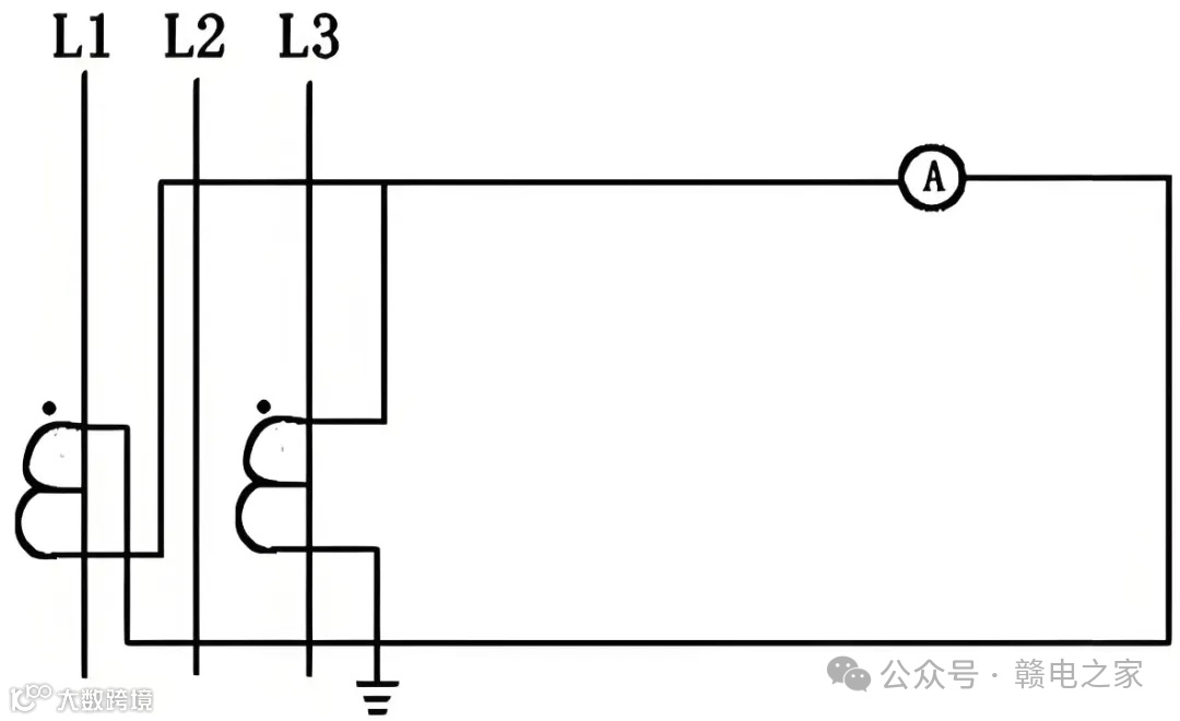 图C,两台互感器V形接线方法,测量对称和不对称三相三线电路中线路上的电流。三相电流矢量和为零,所以最下面电流表测量的是未装互感器那相的电流。此接法也可用于继电保护接线,但灵敏度低。