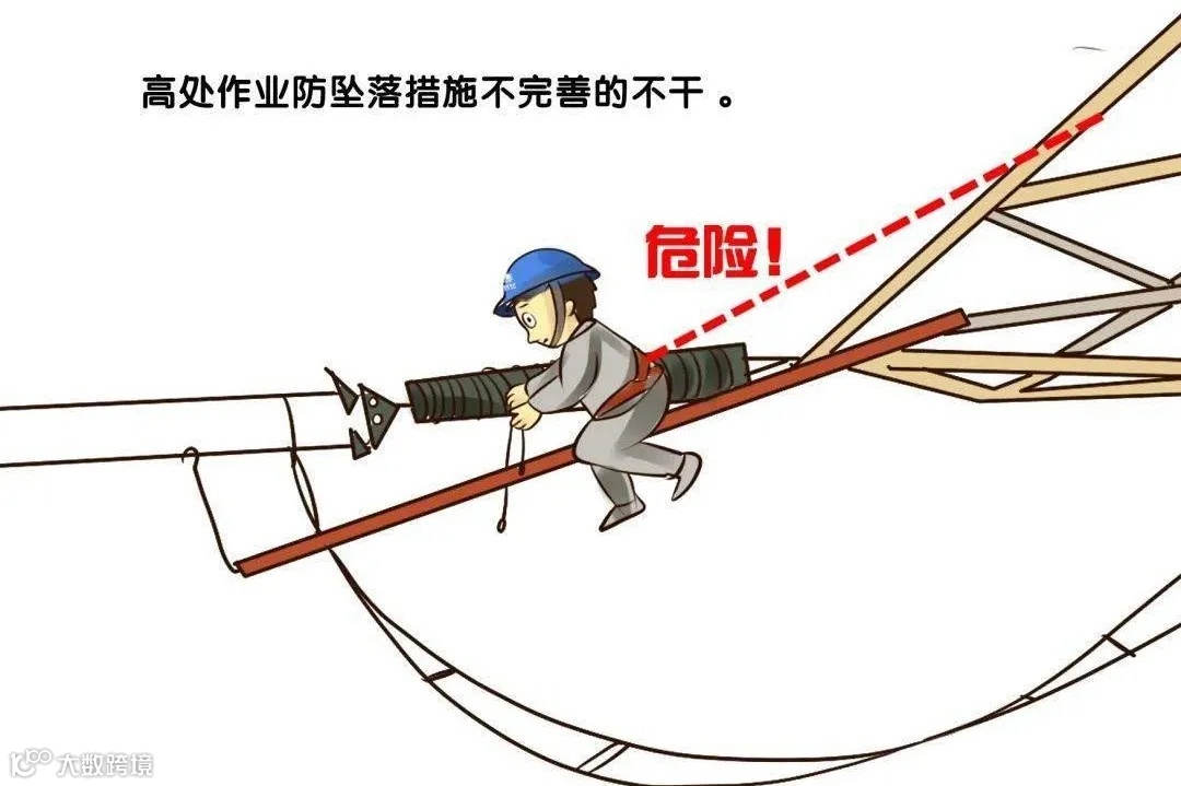 停电工作的设备或地段,可能来电(包括反送电)的各方未在正确位置装设接地线(接地刀闸)。高处作业未搭设脚手架,未使用高空作业车、升降平台或采取其他防止坠落措施。