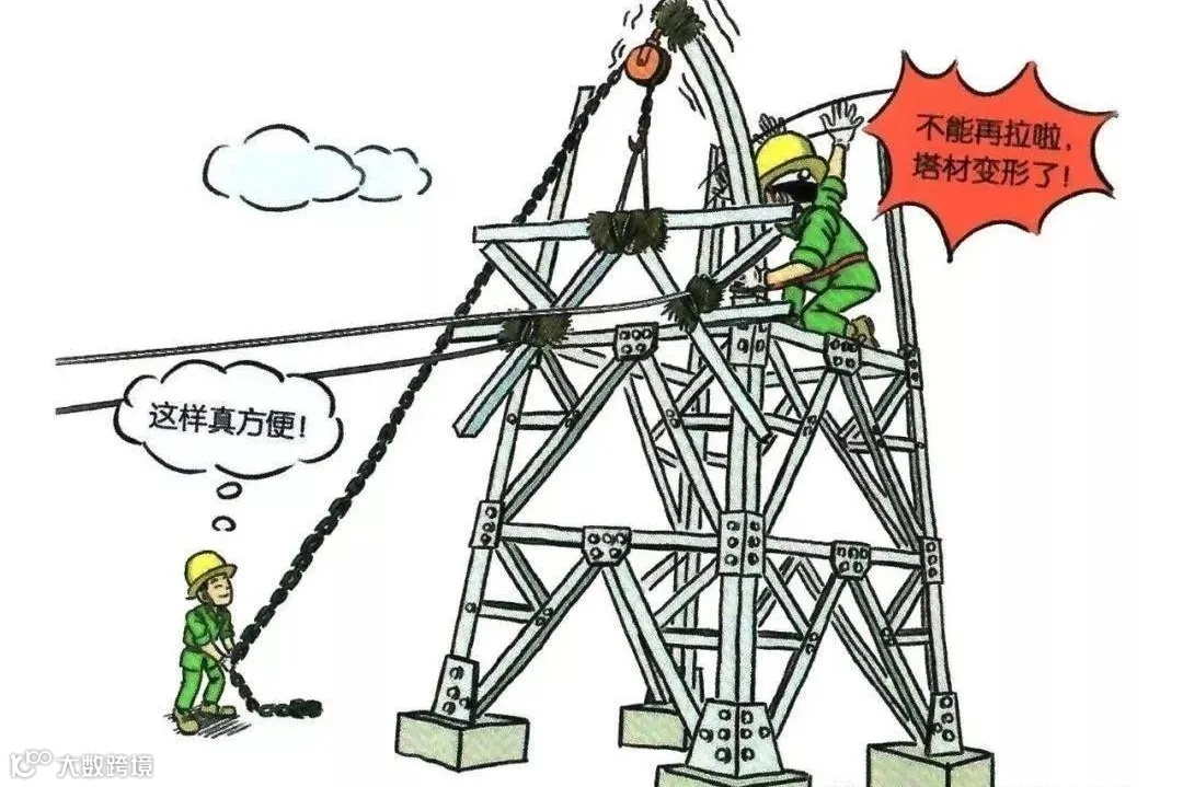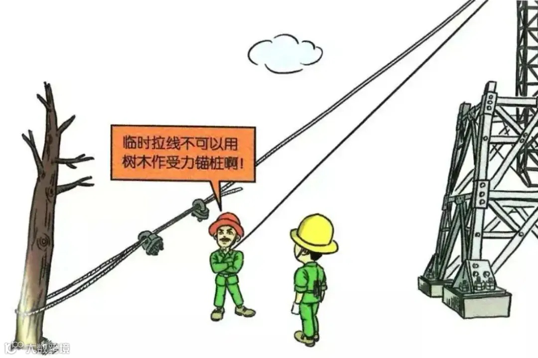 牵引过程中人员处于受力绳索内角侧或直接拉拽受力导、引线