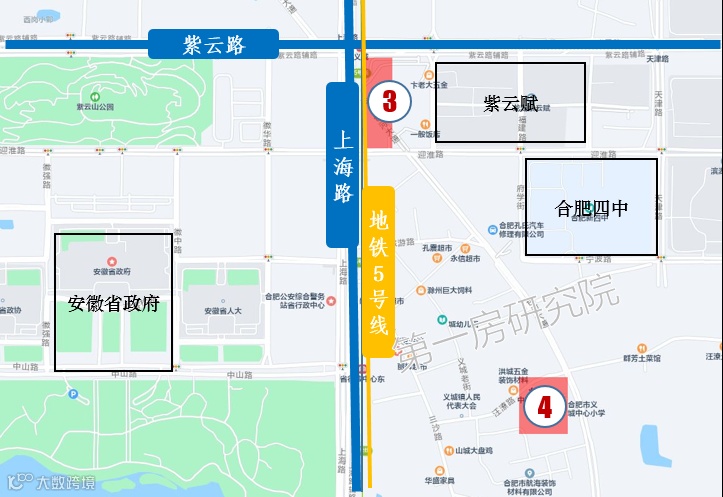 地块3/4位于滨湖省府东,3号地24亩,4号地86亩;3号地紧邻紫云赋、保利和光尘樾等项目,在售中铁及高速;4号地周边居住氛围有待培育;地块3>地块4号,去年一批次供地较多,且全部摇号出让,省府招牌对房企热衷度高,本次该两宗地块入市后,市场无在售竞品,已交付紫云赋二手房3.2-3.4万。