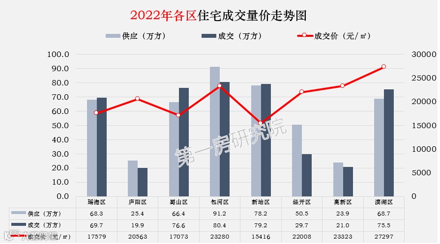 2、根据AI楼市大数据显示,2022年,滨湖区新房成交75万㎡,均价27297元/㎡;包河区新房成交80万方,均价23280元/㎡,量价均处于全市第一梯队。