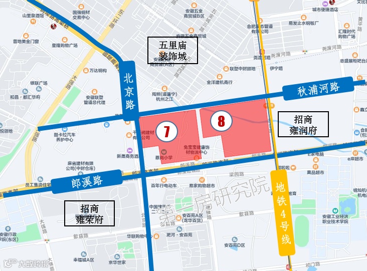 地块7/8位于包河淝河镇,7号地106亩,8号地119亩;两宗地为连体地,8号地紧邻4号线沿线,优于7号地,紧邻在售项目招商雍润府;板块内主力热销盘万科朗拾与保利和光熙悦首开150-200套,小步供应引发摇号,后续皖投项目开盘明显蓄力不足,且后期将有信达、轨交项目加入新战局,预计竞争将进入“白热化”状态;2023年目标供应地块成交后,竞争势必进一步加剧。