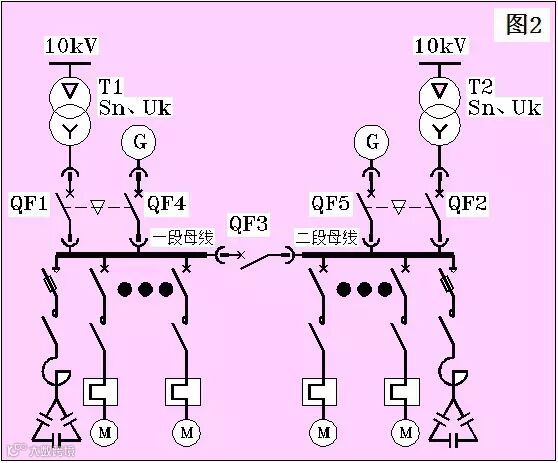 恢复方法1:将母联断路器QF3打开,再闭合对应的进线断路器。这种方法简单,但母线上的负载例如电动机在经历了一次停电重起动后,需要再次经历停电重起动。