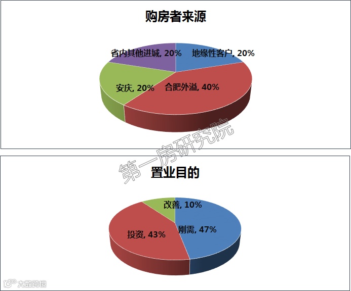 刚需占比47%,投资占比43%,改善占比10%。