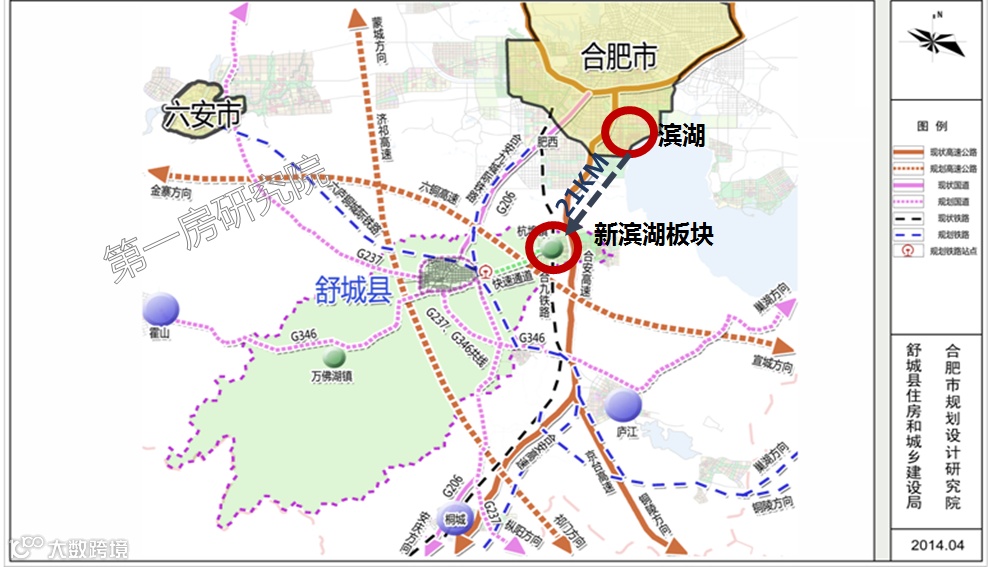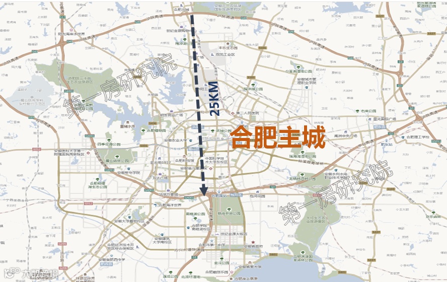 绕城高速从北至南,直线距离约25公里。新滨湖板块到滨湖的这个距离相当于南北横跨整个合肥市的距离,到市区的通勤距离十分夸张。