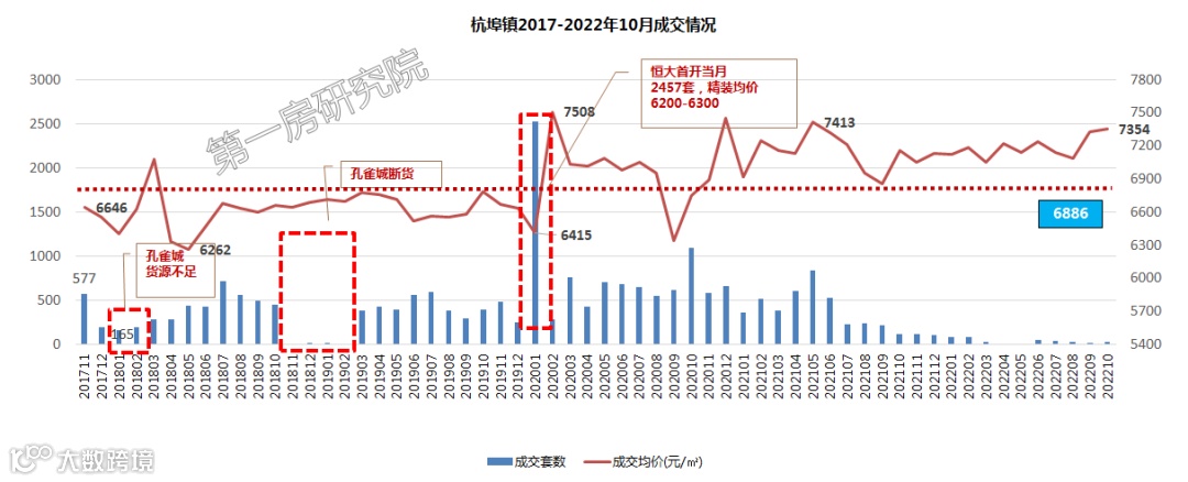 2017年至今,板块从月均400套以上到今年1-10月月均38套,成交量下滑91%,2020年之前,新滨湖板块仅孔雀城一家在售,2年劲销9000套。从2021年下半年开始,房企频繁暴雷,大盘倒市场下行严重,到如今还是一蹶不振的状况。以前能维持在6700-7000元/平米可以走量,但现阶段是价格稳住了但成交量下来了。属于