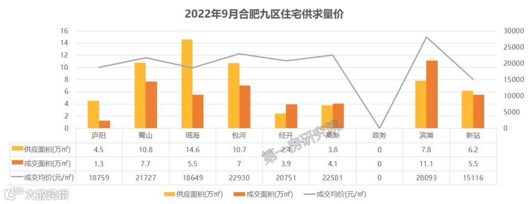 对比9月份合肥各区的住宅市场,蜀山区以7.7万㎡的成交量位于九区之二,成交均价也超过2万/㎡。