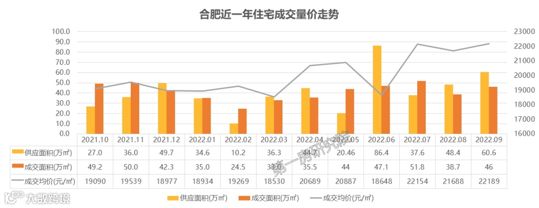 纵观近一年的合肥住宅市场,虽然时有低谷,但整体处于波动上升的趋势,9月累计成交46万㎡,环比上涨18.9%。
