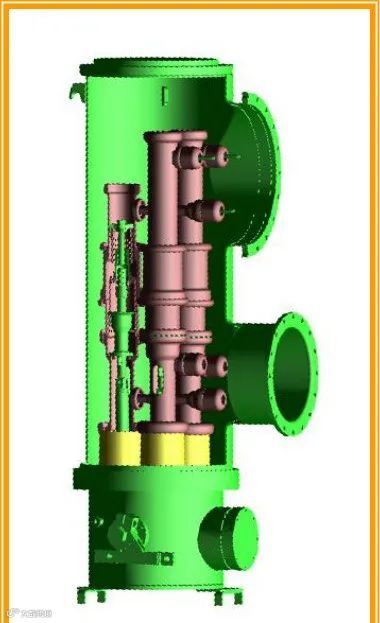 母线采用三相共箱式结构,导体连接采用表带触指,梅花触头。壳体材料采用钢筒及铸铝壳体低能耗材料,三相共箱式结构可避免磁滞和涡流循环引起的发热,采用主母线落地布置结构,降低了开关设备高度,缩小了开关设备占地面积,在适当位置布置金属波纹管。