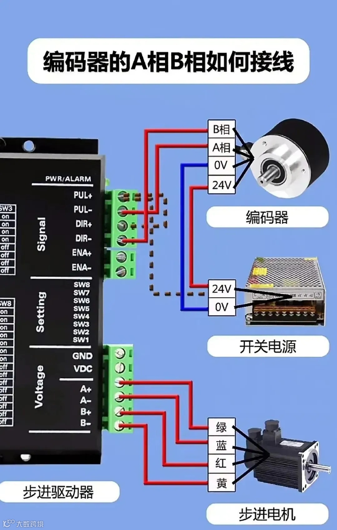 3、编码器的A相B想实物彩图接线方法