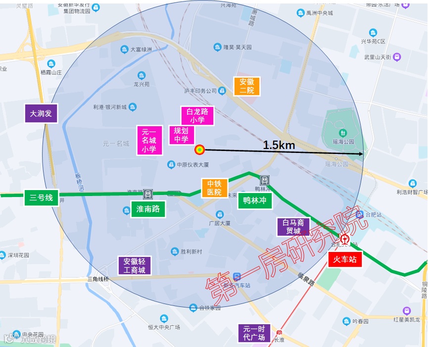 从瑶海区的城区控规可以看出,老城内的建筑基本已经定性,剩余土地稀缺,多为拆迁工厂和征迁城中村,城市更新所出。在地块的西侧和北侧均为规划教育用地,未来将紧邻中小学校,距离三号线淮南路站和鸭林冲站均在五六百米,距离火车站1.5公里,城内城际交通相当便捷,生活氛围浓厚,项目周边配套完善,完美满足生活需求。