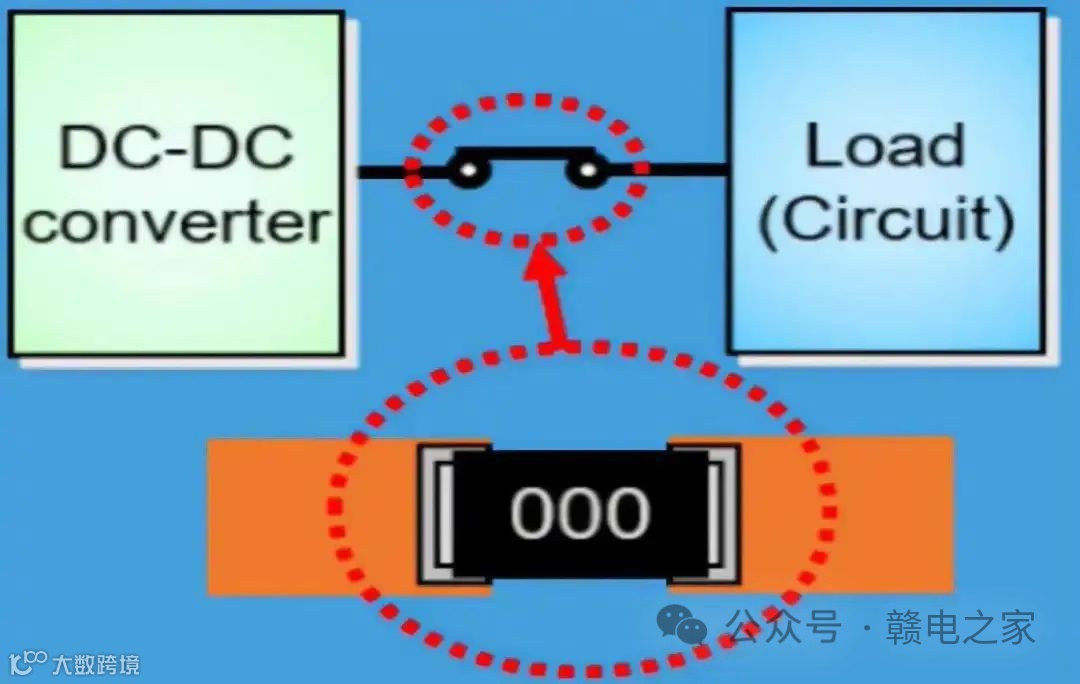 如下图所示,在供电端和被测电路之前接一个0欧姆电阻。