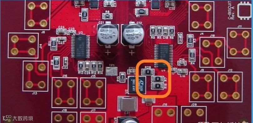 例如这两个白色的焊点,如果不直接连通就需要绕很多路线才能最终连通,如果是单层的PCB板也无法从下面打孔,用0欧姆电阻连通起来,可以减少多层PCB板的采购成本。