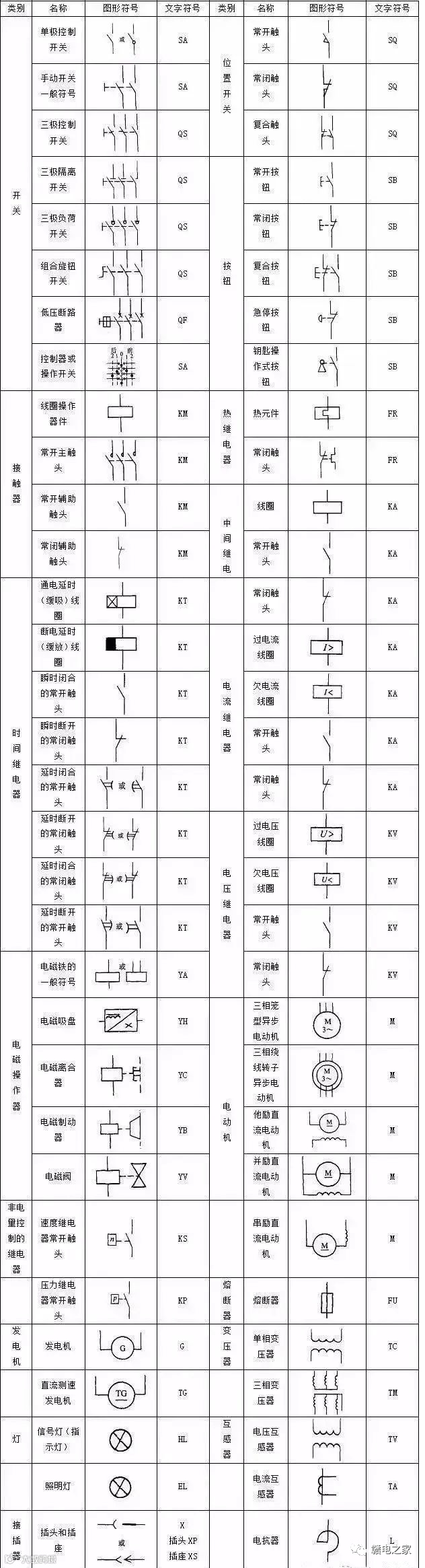 学习电路图识图方法,首先我们需对电路图内的符号含义有充分的了解。下面我们将对常见继电控制回路图符号进行一一解读。