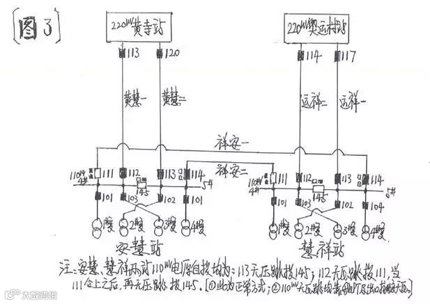 2、目前广泛采用的110kV变电站上电源大多为三电源,即:出自于某一座220kV变电站的110kV不同母线“同方向双电源”给站内两条“两边母线”供电;以及出自于另一座220kV变电站的110kV母线“不同方向单电源”给站内一条“中间母线”供电。优点是两个不同方向的220kV变电站给予供电,提高了供电的可靠性;缺点是接线较为复杂,电源自投繁杂、投资大。