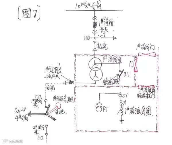1、早期的110kV变电站为了节省资金,其站用变与消弧线圈“结合”使用。站用变即为消弧线圈的“接地变”,其中性点安装一个“快速刀开关”,实现消弧线圈的投入与退出;站用变的0.4kV侧用于低压交流站用电系统。为了与单独的站用变、接地变的区分,此种使用方式的站用变间接地变,统称为“消所”(即:×#消所)。
