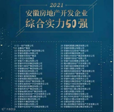 导读:根据安徽省房地产研究会发布《2021安徽省房地产行业综合实力50强》榜单,文一集团综合实力排行第一,金鹏集团