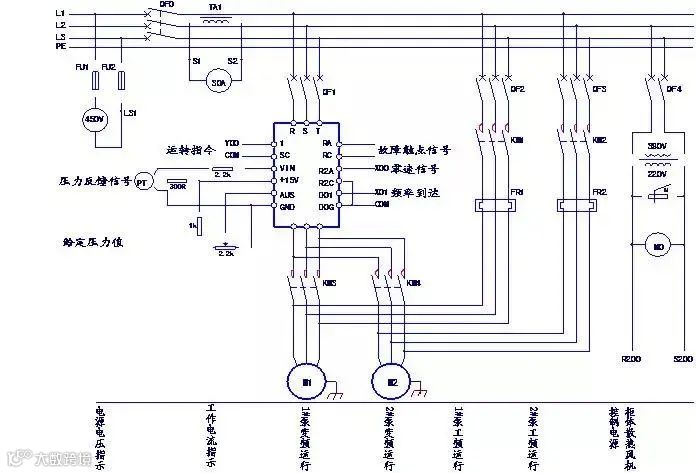1、看电源,首先看清电源的种类,是交流还是直流,其次,要看清辅助电路的电源是从什么地方接来的,及其电压等级,电源一般是从主电路的两条相线上接来,其电压为380V,也有从主电路的一条相线和一零线上接来,电压为单相220V,也可以从专用隔离电源变压器接来,电压有140、127、36、6.3V等。