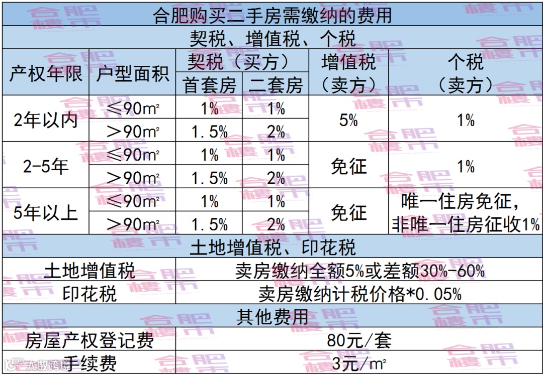合肥住宅交易税费