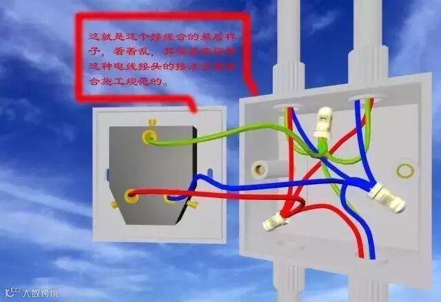 电线的打火,短路,接触不良,等等的故障不止是在接头上,还有一处是在接线盒内,有很多的现象是新房子水电都没有问题,装修结束后问题就现来了,再说一下电线盒内线头接法。看着乱其实是有规律的,红的是火线,篮的是零线,花的是地线。