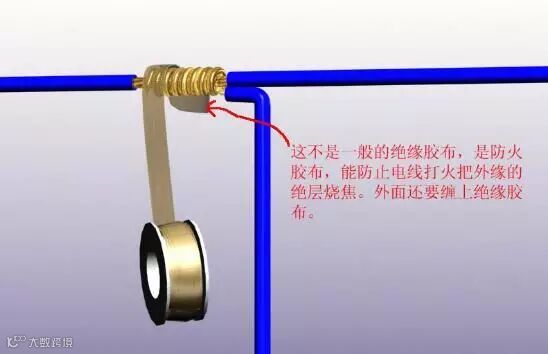 现在接线头如果讲究的话,电线应该用防火胶布缠在里面,它的作用就是防止电打火烧坏东西,这是在吊顶内很重要,特别是现在很多吊顶材料用了木方做龙骨,更需要这样做(吊顶内)。