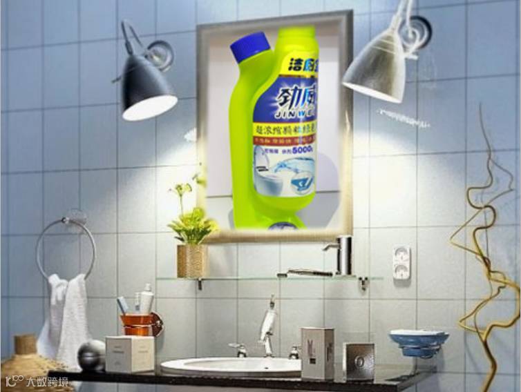 卫生间镜面水斑、洗漱台经常会被溅上水滴,有白花花的水斑实在影响美观,劲威高浓缩洁厕宝稀释后、用喷雾瓶、喷在玻璃与洗漱台上轻轻一擦干干净净。