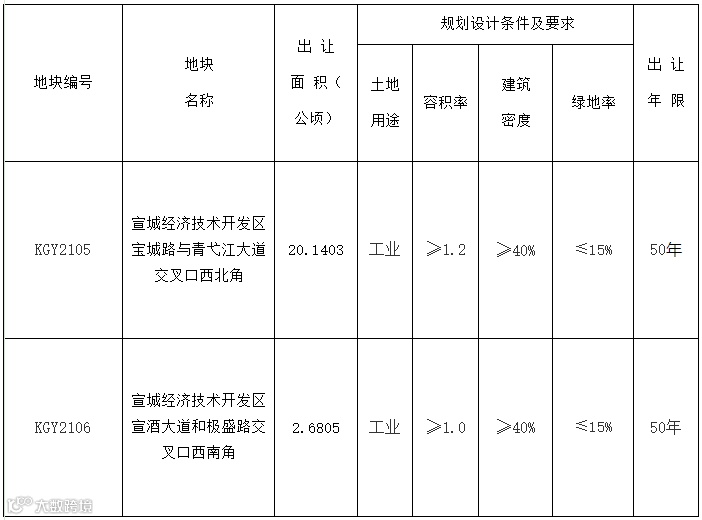 宣城经济技术开发区宝城路与青弋江大道交叉口附近2宗工业用地使用权成功出让,竞得者分别为安徽辉隆集团辉铝新材料科技有限公司和安徽兴锂新能源有限公司。